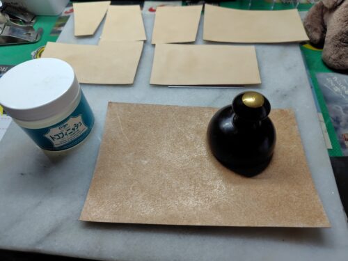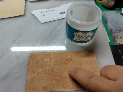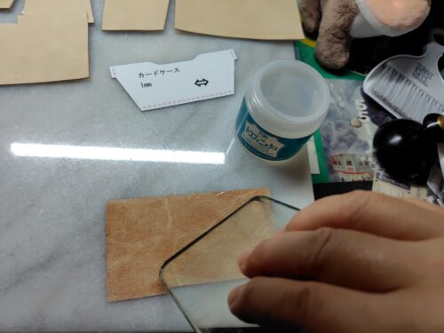 裁断してからトコ処理をすると革が伸びて形が変わってしまう気がするからです。