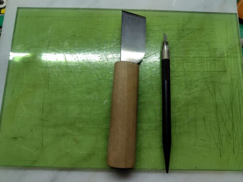 けがきには丸ギリを使っています。ケガキ用のペンも使ってみましたが、丸ギリの方が僕は使い勝手が良いです。
