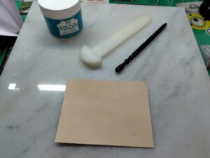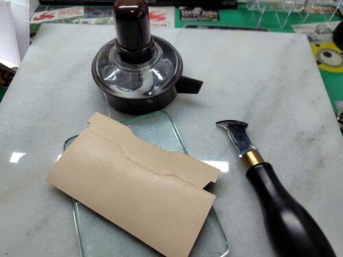 ヘリ漉きには革包丁の丸刃を使っています。