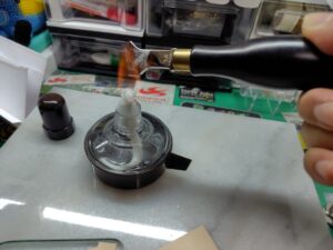 アルコールランプで玉捻を熱して線を引きます。