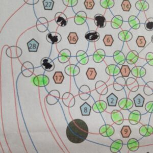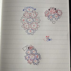 塗り分けた色が編み図の何処に対応しているかを調べるため、手書きですが、こんな図を作成。